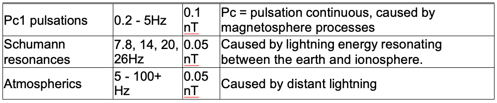 There are certain geomagnetic variables that change at frequencies required for EIFs. Unfortunately, it turns out that these variables, though they have relevant frequencies, are far too weak to produce EIFs, as shown in the table (Campbell, 2003).
