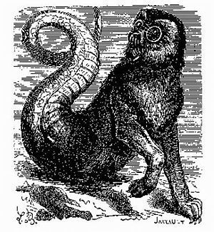 A wolf with a serpent’s tail, breathing fire.